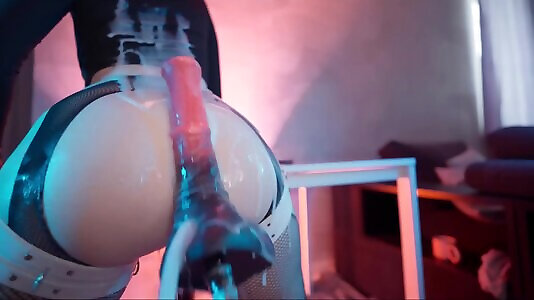 Crazy fucking machine fucks big ass babe in fishnet stockings