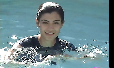 Xxl Breasted Brunette Coed True Tere Gets Wet In The Pool!