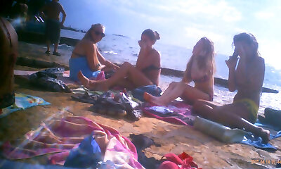 Drunk Party Gals in Sexy Bikinis at the Beach