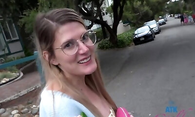 Nerdy babe with small tits loves atm pop-shot on her glasses