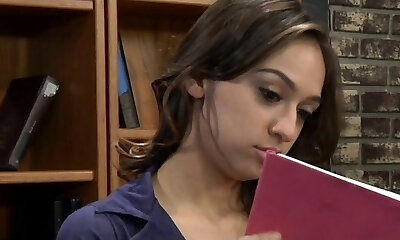 प्रोफेसर की अनुपस्थिति में, सही स्तन के साथ मेरे सहपाठी और मुझे कक्षा डेस्क पर कमबख्त मज़ा आता है