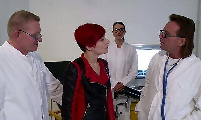 Rothaarige Punkerin auf Gynstuhl beidseitig untersucht