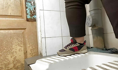भयानक सार्वजनिक शौचालय, शीघ्र पेशाब और कतार दरवाजे के बाहर