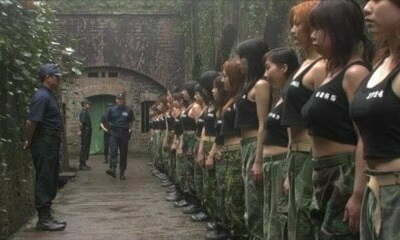 सैन्य लड़कियों को उनके कमांडिंग अधिकारी के साथ एक त्रिगुट है