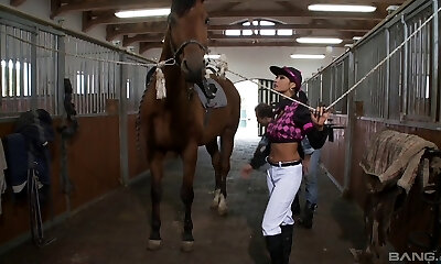बँध बड़े स्तन के साथ काले बालों वाली शीना राइडर कल्पनाओं के ठीक रियर अंत