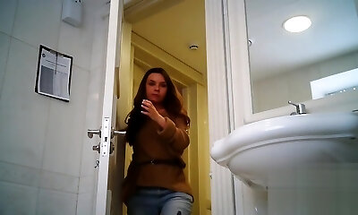 Imagine you are in restroom bowl spying girls pissing