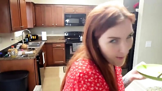 Busty stepmom gets an unexpected Orgasm in the kitchen