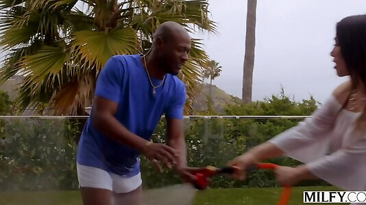 A white man gets to donk drill a sexy dark-skinned-skinned exotic whore by the pool.