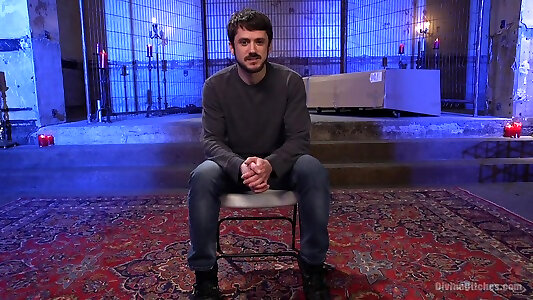 Super-naughty blonde domina London Sea makes her male slave cum in bondage