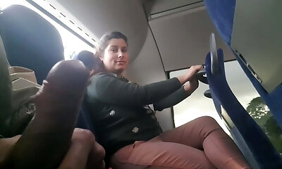Exhibitionist seduces MILF to Gargle & Jerk his Dick in Bus until He Cums