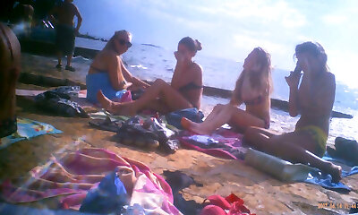 Upshorts dick flash for group of women on beach