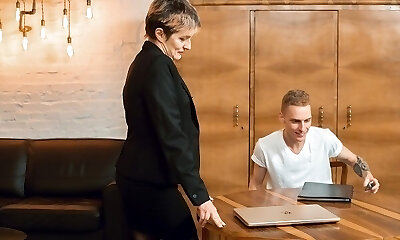 Horny mature gets her curvy assets rocked by young lad