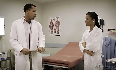 Sexy doctor Kira Noir lures her tall colleague to be fucked in the polyclinic
