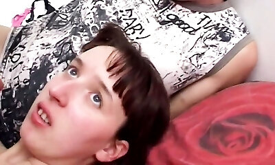 All natural and too pale brunette with ugly makeup gets pummeled missionary
