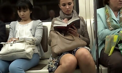 Amazing Towheaded in Bus (downblouse and upskirt no pantie)
